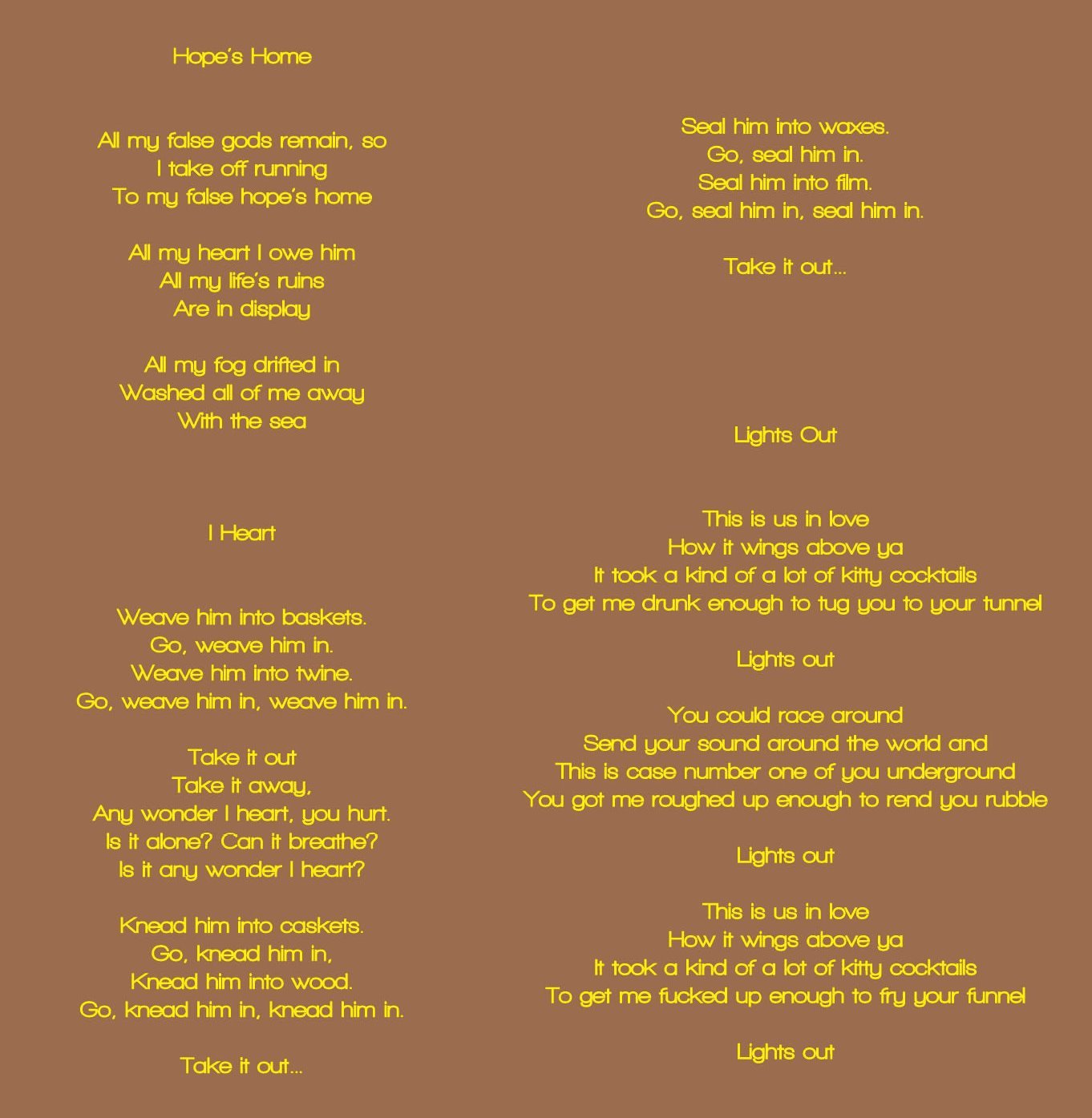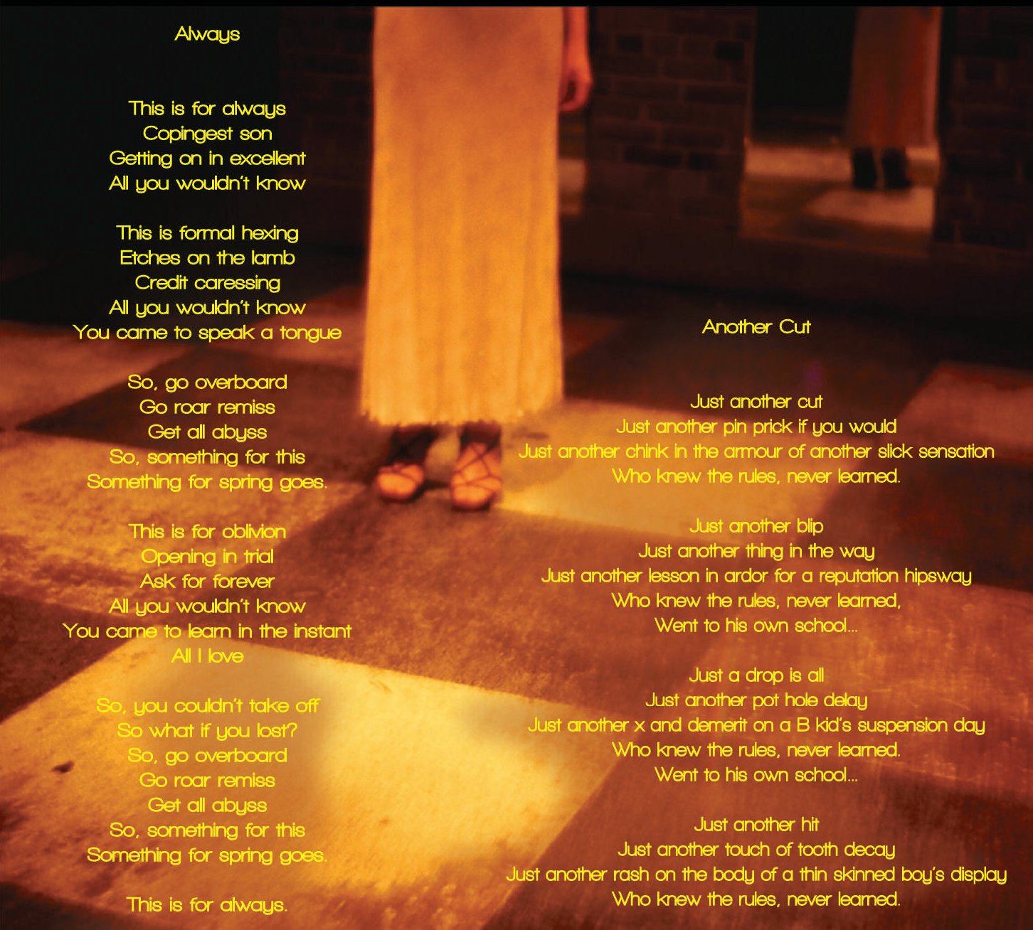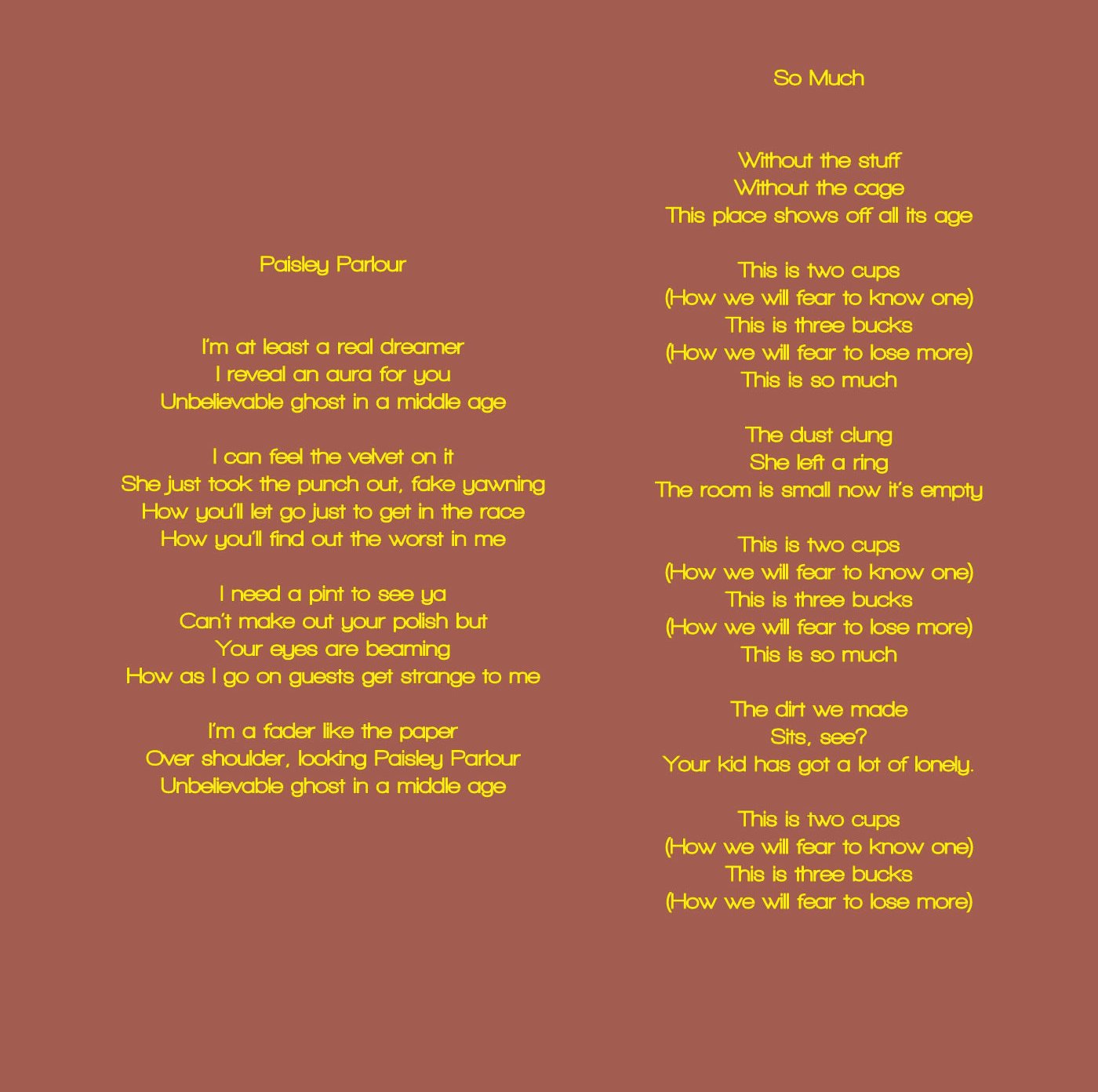 All songs written by James Raftery (Serious Janitor Music/Mad Elegant Music, BMI) Acres © 2010 Rat Disk